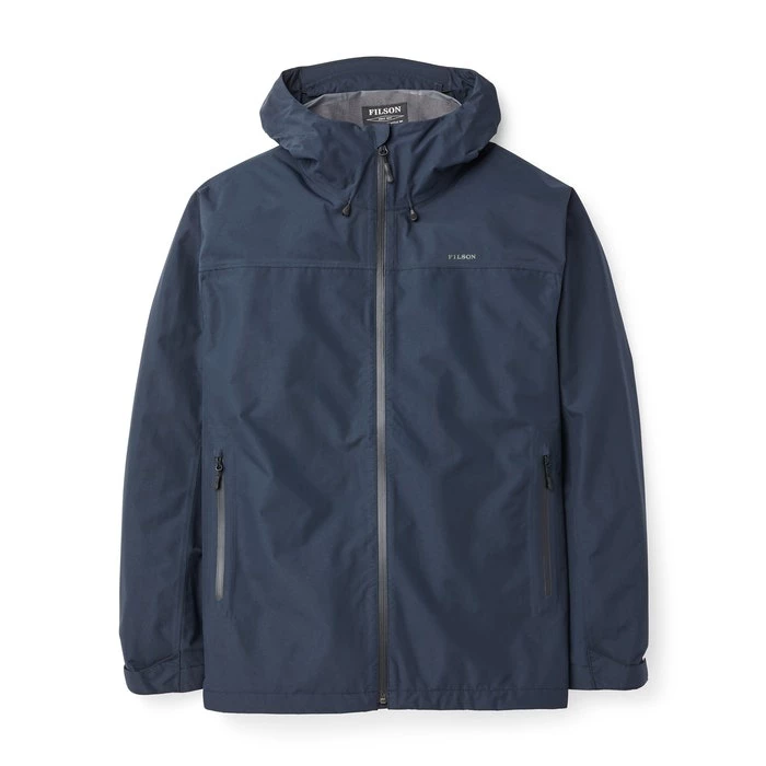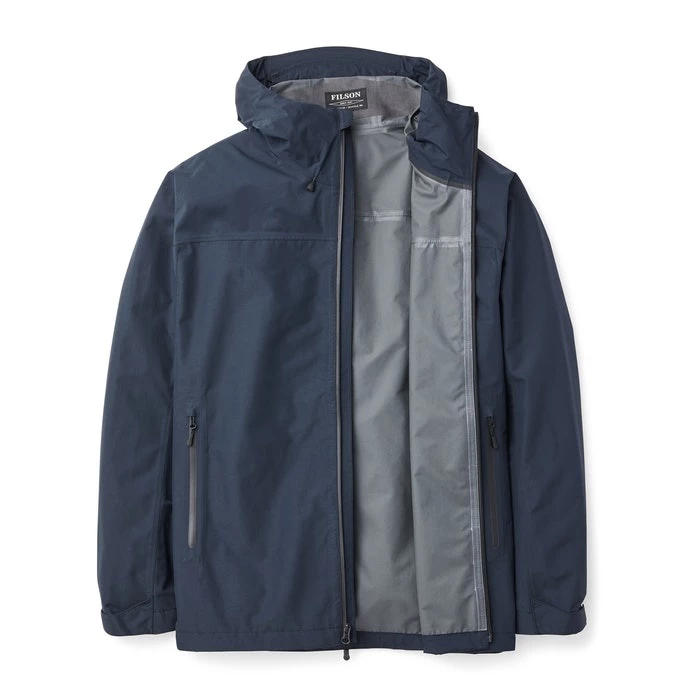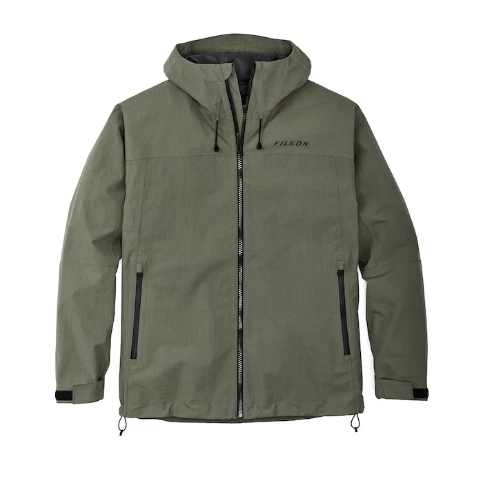 Waterproof and breathable, the technical Filson Swiftwater Rain Jacket is designed for everyday use to keep you dry. Constructed with a 2.5-layer nylon laminate with printed-on waterproof membrane, this extremely lightweight shell packs into its own pocket—ready to be deployed when the weather turns. Features a 2-point adjustable hood with structured brim. YKK® AquaGuard® zippers are employed throughout the jacket. Drawcord hem and Velcro® cuffs let you fine-tune the fit.