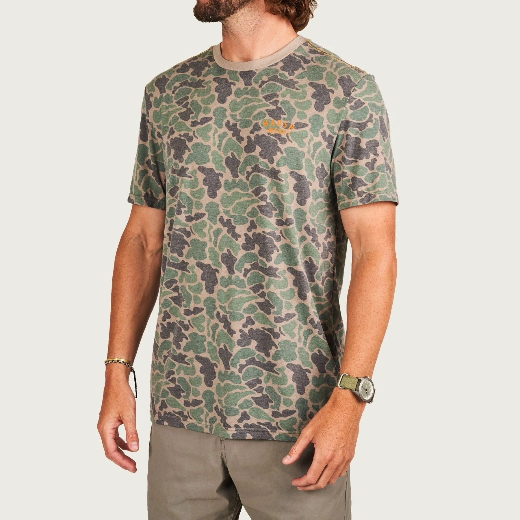 A combo of our favorite two things! Old school camo and the softest performance fabric out there. We wanted the buttery soft hand of our favorite t-shirt with all the performance features needed for any pursuit, and the Stackhouse fits the bill.Â